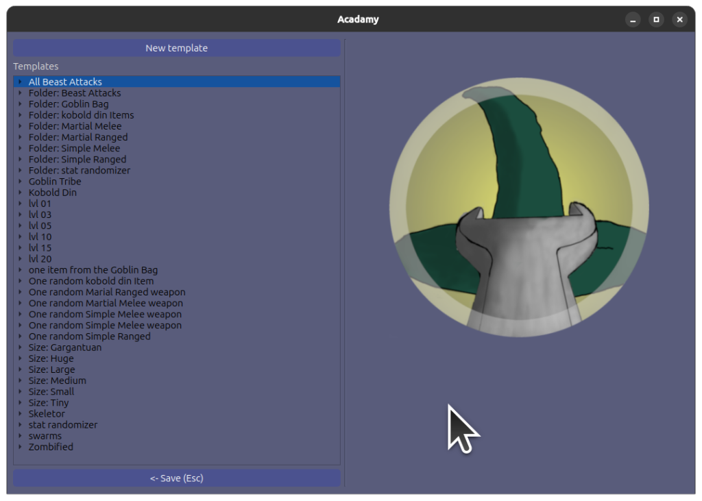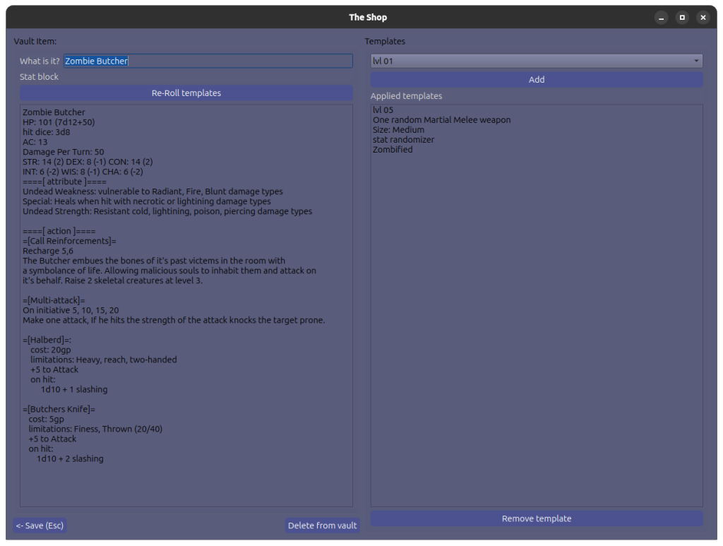 - Lastly hit the re-roll templates to re-generate new random stat-blocks until you find stuff you like. One thing I like to do is copy things out that I liked, keep hitting re-roll button and then pasting that thing back in. For instance when I am looking for a specific weapon or item but the rest of the sheet does not match what I want yet.