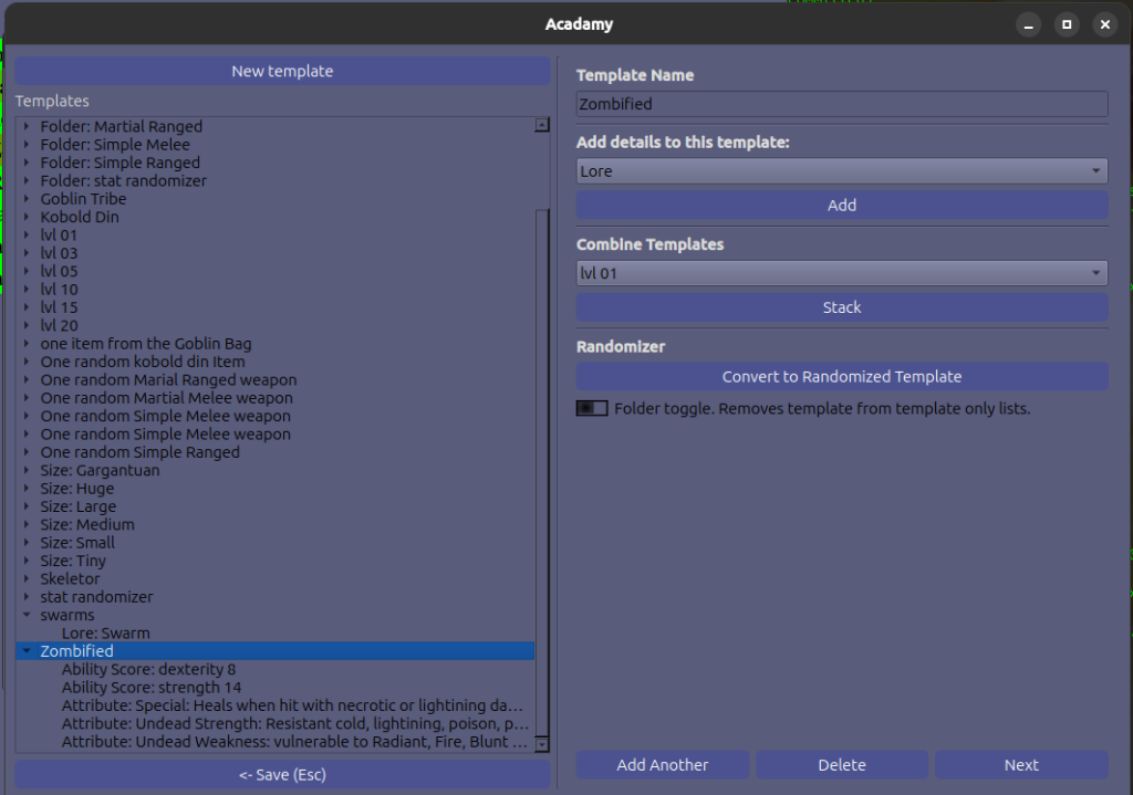 As a reminder these templates don’t get applied specifically to monsters. They can be applied to any “item” inside the vault. Which is just where we keep stuff to be used in our encounters later.