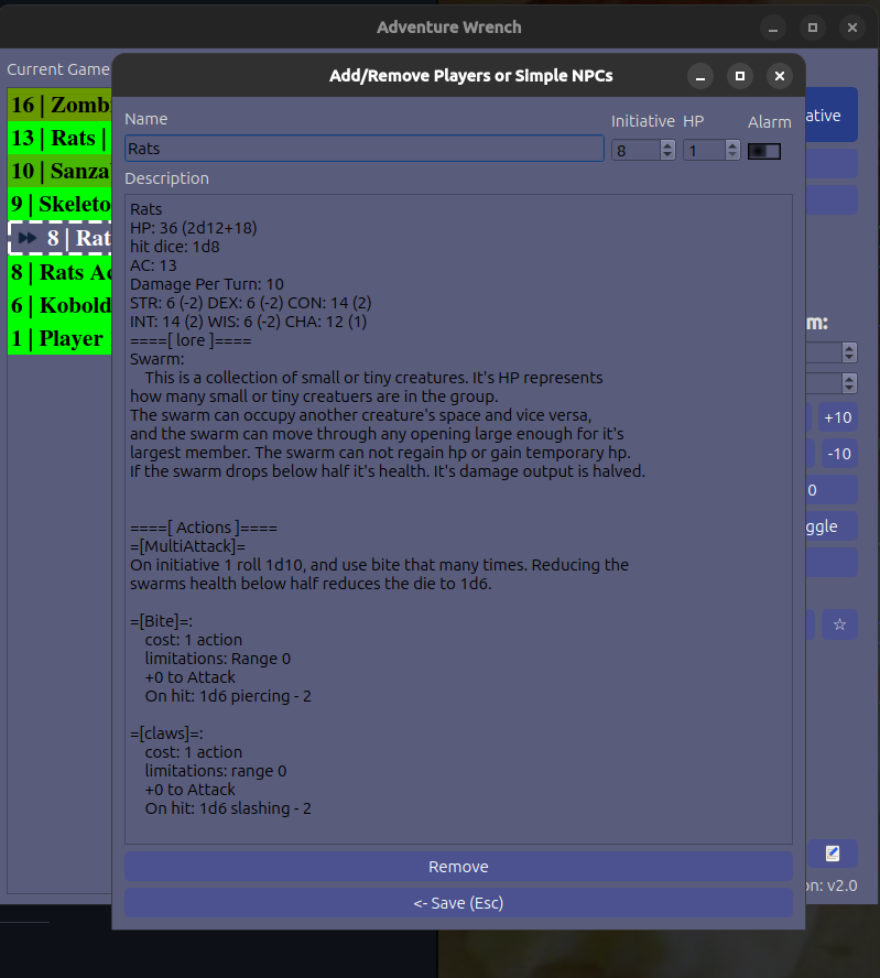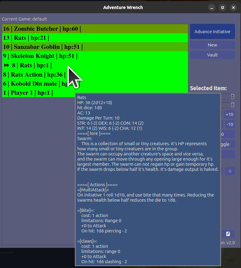This is a fully contained, and Offline, Encounter Tracker. For people that run games off old laptops or don’t want to deal with spotty wifi. The source is open for reading over here. https://github.com/nogasgofast/Adventure_Wrench/