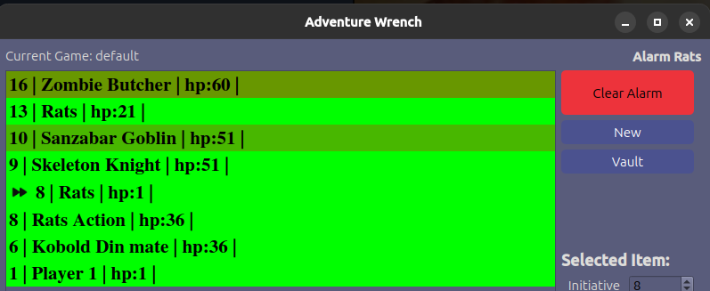 I know what your thinking. “What does alarm do?” Setting the alarm on this entry makes sure every time the turn order advances to this item you get a notice. You can click the Clear Alarm button to continue advancing to the next turn order. The alarm will go off again next time this things turn order appears.